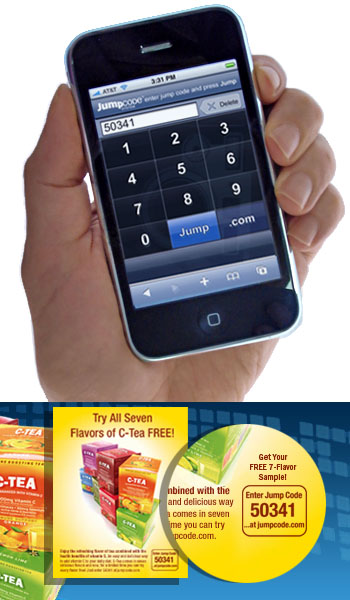 With Jump Codes, iPhone users now have easy, instant access to the savings offers, product details, or any other Net-accessible feature they see referenced in advertising, and can reach these locations instantly by simply entering a short, five or six-digit Jump Code instead of the frustrating task of having to enter these very long URLs by hand.